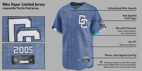 Rep your Washington Nationals with this awesome 2025 City Connect Limited Jersey. This Washington Nationals 2025 City Connect jersey features a patch on the chest that pays homage to the original Nationals alternate logo from 2005. If you look carefully on the torso, you'll see the city grid of Washington, with the curly W placed right where Nationals Park is. This jersey is the perfect dedication to the city your team calls home.