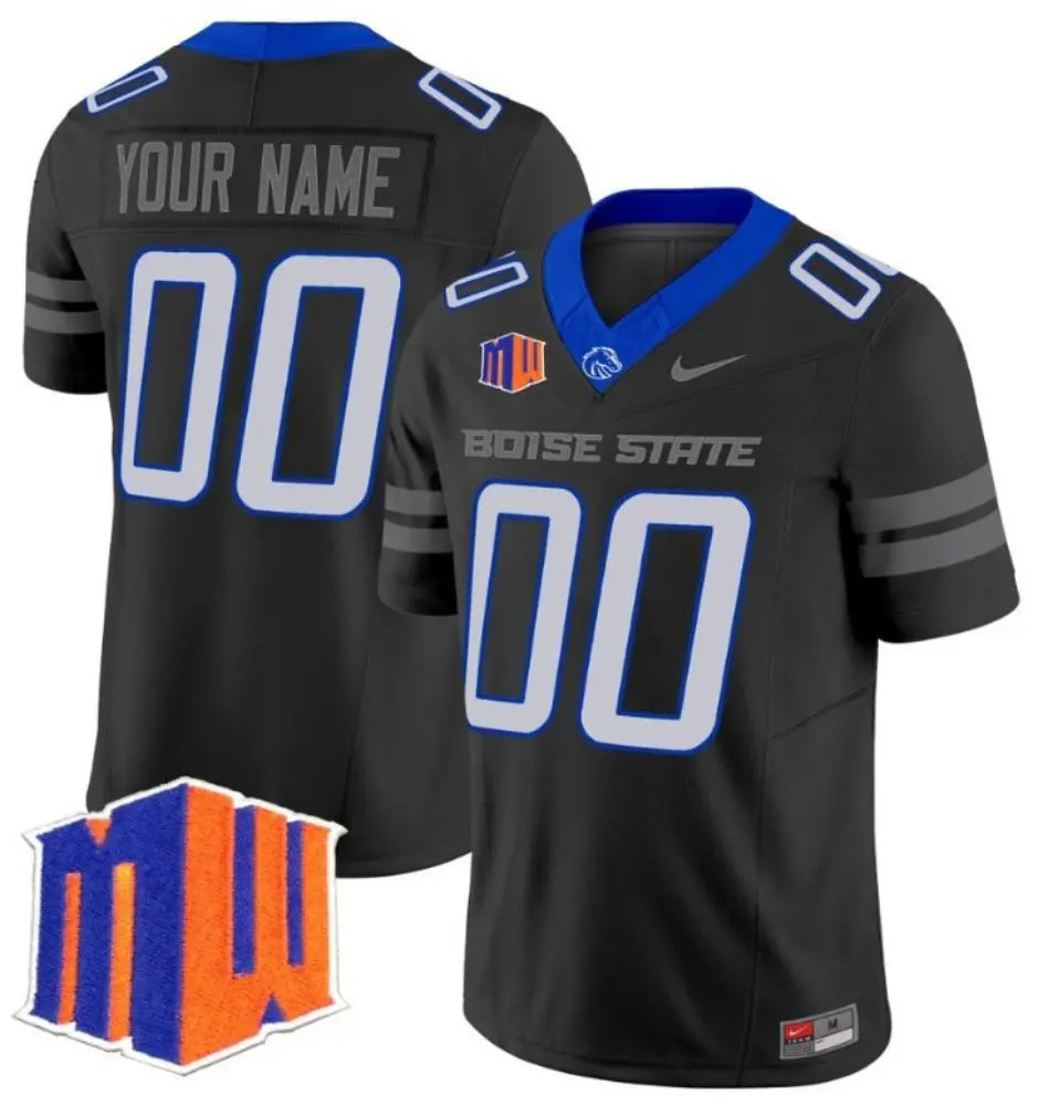 Jersey with MW Logo,Boise State Broncos Team Wordmakr "BLUE COLLAR "across the inside of the jersey collar