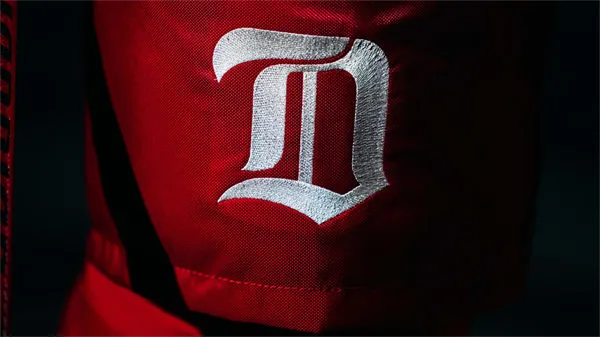 A special Centennial logo patch appears on the left shoulder, while a refreshed version of the "Hockeytown" mark is tucked inside the collar. Along the inside hem, the Red Wings' 11 Stanley Cup championship years are listed, framed by outlines of the original trophy on one side and the current Stanley Cup on the other. The Priority sponsor logo will be incorporated into the overall design and positioned on the right shoulder.