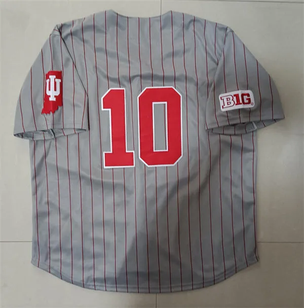 Indiana Hoosiers #10 Kyle Schwarber 2025 Gray Pinstripe College Baseball Game Jersey