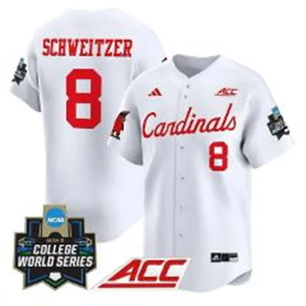 Home » NCAA Jersey » Louisville Cardinals » Louisville Cardinals Baseball Jersey » Louisville Cardinals #8 Jake Schweitzer White 2025 College Baseball World Series Jersey