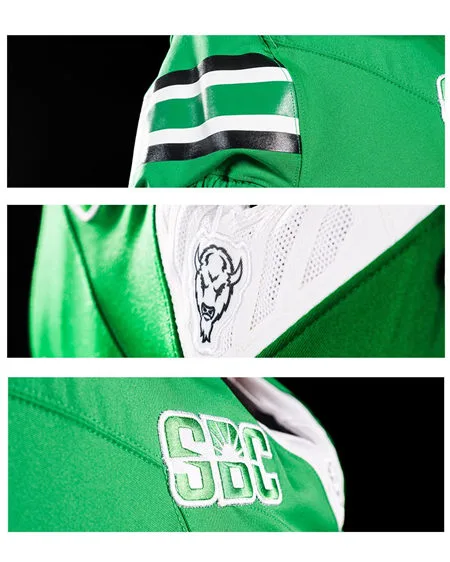The Marshall Thundering Herd Football 2025 Uniform Jersey biggest change comes to the sleeves: both jerseys now feature a modified stripe in black/white/green/white/black. It's a sharp addition that ties in directly with the striping on Marshall's white helmets- a small detail that creates a much more cohesive look across the entire uniform.