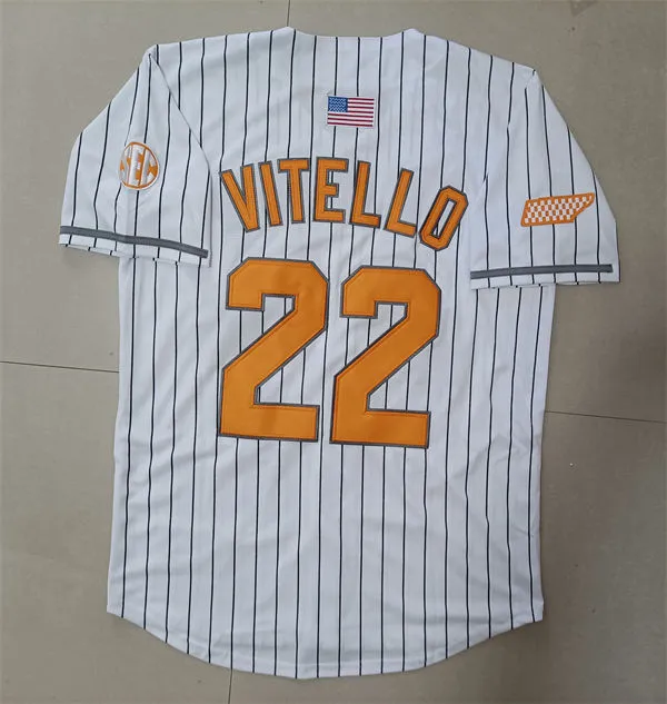 Home » NCAA Jersey » Tennessee Volunteers » Tennessee Volunteers Baseball Jersey » Tennessee Volunteers #22 Tony Vitello White Pinstripe T Logo with name Baseball Game Limited Jersey
